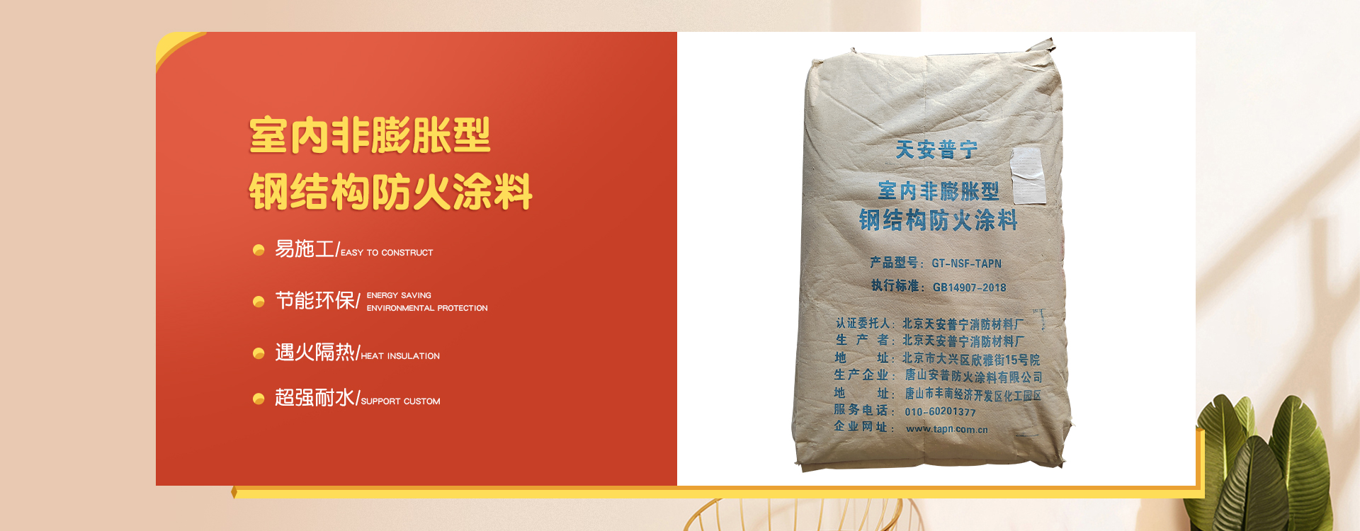 北京天安普寧消防材料廠是一家從事防火涂料二十多年生產(chǎn)企業(yè),企業(yè)集研制開發(fā)、生產(chǎn)銷售及各類防火涂料施工為一體。 企業(yè)員工總數(shù)100人,其中管理人員20人,科研人員10人,銷售50人,其他員工十多人。企業(yè)生產(chǎn)用地面積2000平方米左右,辦公用地面積1000平方米。擁有先進(jìn)的生產(chǎn)設(shè)備20多臺,年生產(chǎn)量10000余噸。  企業(yè)擁有一支高學(xué)歷、資歷深的研發(fā)隊伍,以科學(xué)的管理,先進(jìn)成套的生產(chǎn)流水線設(shè)備及完善的產(chǎn)品質(zhì)量檢驗措施,開發(fā)出TAPN系列防火涂料產(chǎn)品,可以滿足于各類建筑工程中不同基材、不同技術(shù)要求的防火保護(hù),天安普寧系列防火涂料全部經(jīng)過《國家消防及阻燃產(chǎn)品質(zhì)量監(jiān)督檢驗中心》檢驗,理化性能合格,防火性能高,通過《應(yīng)急管理部消防產(chǎn)品合格評定中心》認(rèn)證并獲得《消防身份信息標(biāo)識》。 企業(yè)結(jié)合多年的工程施工實踐經(jīng)驗,培養(yǎng)了一支專業(yè)有素、經(jīng)驗豐富、高質(zhì)量、效率高的防火涂料施工隊伍,可承攬各類高層、多層、大跨度廠房及網(wǎng)架鋼結(jié)構(gòu)防火涂料噴涂施工服務(wù)。 企業(yè)始終為用戶全心全意服務(wù),不斷滿足各建設(shè)單位的要求,共同為我國的建筑消防事業(yè)作出更大的貢獻(xiàn),衷心感謝新老客戶的支持,全體員工熱情歡迎廣大用戶的光臨惠顧。